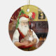 Tomten är hemma framför en mysigt brand med sin Pommern som råkar ha en valp.