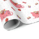 En mönster av en bild av tomtens själ som flödar över med presenter mot en vit bakgrund med rött och grönt. Mycket festlig.