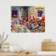Ett vackert vintage affisch med tomten med sina älvar i verkstaden.