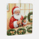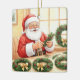 Bring the heartwarming magic of a cozy Christmas to your tree with this charming square ceramic ornament! Featuring a delightful illustration of Santa Claus happily crafting a festive evergreen wreath in his workshop, complete with a roaring fireplace, decorated tree, and plenty of crafting supplies.