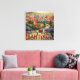Discover the vibrant soul of Santiago in this extraordinary impressionist celebration of one of South America's most dynamic cities. This masterpiece bursts with color and energy, showcasing the Metropolitana Cathedral rising majestically between twin spires, framed by lush purple jacaranda blossoms and towering palm trees. The sprawling urban landscape unfolds in a symphony of warm terracottas, golden yellows, and azure hues—a living tapestry of colonial architecture blending seamlessly with modern skyline drama. Watch as vintage red buses navigate tree-lined streets where locals gather in sun-drenched plazas, their vibrant clothing echoing the colorful buildings that embrace them. Snow-capped mountains frame the horizon in soft blues and grays, while the artist's bold, textured brushwork infuses every element with movement and passion. Perfect for those who love Latin American culture, architectural heritage, urban art, and the intersection of history and contemporary life, this stretched canvas transforms any space into a window onto Santiago's irresistible charm, where tradition dances with modern vitality beneath eternal skies.