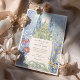 Meddela ditt destinationsbröllop med den här hisnande konstnärliga inbjudan, med en fantastisk vattenfärgsillustration av katedralen i Santiago de Compostela i Spanien. Utformningen är inspirerad av Art nouveau-rörelsens elegant och ekologiska former, med invecklade vindruvor av blommigt som ramlar in den centrala bilden och personligens text. Den rik paletten med blues, gröntar och mjuk skapar en romantisk och tidlös känsla, perfekt för ett historiskt europeiskt bröllop. Den här unika inbjudan är perfekt för par som uppskattar konst, historia och gammal världscharm och som ger en verkligt minnesvärd ton för din speciella dag.