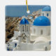 Kvadratisk keramisk ornament med en bild av den grekiska ön Santorini, klassisk Thera och officiellt Thira. Santorini är en ö i södra Egeiska havet, ungefär 200 km (120 min) sydost om Greklands fastland. Det är den största ön i en liten, cirkulär skärgård som bär samma namn och som är en kvarvarande vulkanisk kaldera. Se hela Greklands förteckning över ornament i avsnittet HOME.