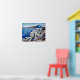 målning av en svart katt som genomsöktes på en vithewaserad kyrka i det vackra Santorini i Grekland.