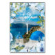 Santorini, Grekland med blå blommigtar och gröna accenter, har en fantastisk vattenfärgsutformning. Du kan enkelt redigera eller ta bort någon av de tillgängliga texterna fält på båda sidor till kostym. Se de övriga samordnande objekten i den grekiska samlingen.