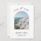 Fånga Santorinis och inbjudan skönhet med de här två fotot spara inbjudan till datum. På framsidan visas ett enastående fotografi av Santorini som anger perfektens ton för bröllopsdagen. Lägg till ett eget foto på baksidan och anpassa texten så att den blir din egen.