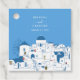 En vacker förstagångsmärkning som illustrerar Santorini, blåa domekyrkor, Bougainvillea, terracotta-kransplantor med en grekisk övit bakgrund som tvättar väggar. En elegant destination Santorini, Greklands bröllopsdesign perfekt för Santorini och grekiska öar i Medelhavsstil. Det finns också möjlighet att matcha bröllopsinbjudningar och andra artiklar i kontorsartiklar.