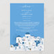 Ett vackert italienskt kort med en rustik illustration av Santorini, blå kukkyrkor, Bougainvillea, terracotta-pottplantor med grekisk bakgrund av den vita skölden. En elegant destination Santorini, Greklands bröllopsdesign perfekt för Santorini och grekiska öar i Medelhavsstil. På baksidan av kortet visas ett minimalistiskt monogram med en blå domkyrka. Det finns också möjlighet att matcha bröllopsinbjudningar och andra artiklar i kontorsartiklar.