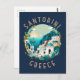 Santorini Grekland illustrerar detta i en cirkel med en nödlidande text. Santorini är omedelbart igenkännligt för sitt vita, kubikformade byggnad med blå accenter, branta klippor och tangerinsolnedgångar som tänder himlar och hav.