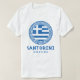 Santorini, Grekland distressed design herr vit T-shirt med Greklands nationalflagga inuti en grekisk blå Aztec-cirkel och namnet på ön skrivet i grekisk stil. Denna T-shirt är idealisk för dig att ha på dig medan du njuter av din semester på den vackra grekiska ön Santorini. Du kan också ge denna som en present från Grekland till någon som kommer att gilla denna T-shirt.