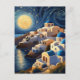 "santorini greece öart", "greek byggnad och house", "måne och byggnad i stad", "Turismens resande oljemålning", "blue and white målade", "kustnära månbelyst by i kusten", "Sea Sea Starry night", "midnight light swicape", "mörk navy swirling himmel", "mediterrana stil hem"