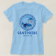 Santorini, Greklands kvinnliga blått T-Shirt med formgivning med grekiska stil-bokstäver och det grekiska nyckel linjer mönster. Denna Santorini-sommardesign gör den här t-shirt perfekt som gåva eller souvenir eller till bära medan du befinner dig på en ö mellan resa och Santorini.