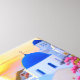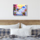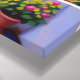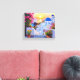 Fånga Santorinis andningsskönhet vid gyllene timmen med det här fantastiska kanvastrycket. Den har en viktig balkongscen som bortser från Egeiska havet och som är försedd med levande bugainvillaviner, klassiska vita stuckmurar och koniska koboltkukar, som är utlämnade med lysande, imponerande penseldrag.