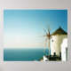 Watercolor-stil-bild av en kvarn kant vid kaldera i Oia på den grekiska ön Santorini