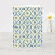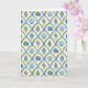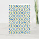 Det här vykortet har ett mönster av blå akvarell-målade skal mot en gul bakgrund.