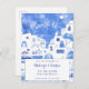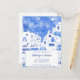En modern vattenfärgsmålning av den picturesska staden Oia på den grekiska ön Santorini för att fira kärlek med lite elegans och skönhet. De här inbjudningarna är inspirerade av öns fantastiska perspektiv och har en vattenfärgsmålning av Oia i drömblå och vita nyanser. Perfekten för ett destinationsbröllop kommer dessa inbjudningar att ange tonen för er speciella dag och se till att era gäster räknar ner dagarna till ert oförglömliga firande i Grekland. Originalkonst av Nic Squirrell.