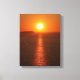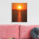 Kanvastryck - Santorini Sunset. Fotografi från solnedgången på den grekiska ön Santorini (en av de mest fantastisk öarna i Grekland, och berömd för solnedgången). Djupt solnedgång i orangen med reflexion över havet och en syn tittar ut till havs mot kalderöarna.