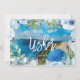 Ett "vill du vara min platsfördelare" -kort med utrymme att lägga till ditt personliga meddelande på baksidan och ändra namnet på framsidan. Med en akvarellbild av Santorini, Grekland, och blå blommor och gröna accenter. Perfekt om du gifter dig där! Besök min butik för att se de matchande korten för bästa man, groomsman, pages, brudtärna och blomsterflicka samt andra designvarianter i denna underbara Grekland-samling.