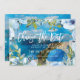 Santorinis blå blommigt bröllop ändrar datumkortet tack kort