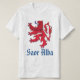 En utslagsplats för skotska självständighetsupportrar. Illustrationen är av det lejona våldsamma symbolet med rött förkroppsligar, gulnar ögon, spontar blått och klor som står på hind ben med tassar som balanseras för att slå. Nedanför är slogan Alba Saor, Scots Gaelic för fria Skottland, i klassikerblåttbokstäver. Du kan ändra ord, att utforma, och färg av stilsorten som passar med skräddarsy, knäppas.