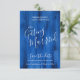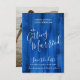 Blå safir har kränkt moderna konstmålade bröllopsinbjudningar. Enkel modern konsthjälp som är perfekt för en contemporary bröllop i starka djupa skuggor av safiffrblyblad. © Originalmålning och -design av Sarah Trett www.sarahtrett.com för www.mylittleedenweddings.com