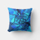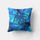 Den här kudden har en originalteckning av abstrakt i rik sapphire blues som skapats i Bryce 3D av konstnären Jayne Wilson.