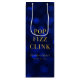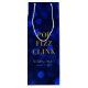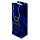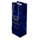 Elegant vin presentväska med ord"Pop Fizz Clink" i faux guld-folie mot en sapphire blue bokeh ljus mönster bakgrund. Perfekt för förlovningsfester, bröllop, årsdagar eller andra evenemang.