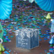 Sapphire Blue Rustic Damask Pattern Wedding Favor Presentaskar