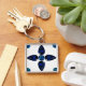 Sapphire Gemstone Art, Blue Keychain Fyrkantig Silverfärgad Nyckelring