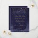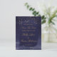 Ansvarig i sapphire och guld, en minimalistisk inbjudan i djup marin blå vattenfärg med klassiskt engelskt skript kalligrafi, som antänds av stänk för att skugga guld.