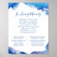 Anpassad tryckt bröllopsminnestavla med en abstrakt akvarellkant i blå färg för att matcha vår Sapphire Tide-kollektion. Personifiera den med din egen text till minne av nära och kära som inte längre finns hos dig för att fira. Använd designverktygen för att redigera teckensnitt och färger eller ladda upp dina egna foton för att skapa en unik bröllopstavla.