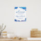 Anpassad tryckt bröllops välkomstskylt med en abstrakt blå akvarell kant för att samordna med vår Sapphire Tide kollektion. Personifiera den med era namn och bröllopsdetaljer. Använd designverktygen för att redigera teckensnitt och färger eller ladda upp egna foton för att skapa en unik bröllops välkomstskylt.