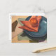 Ett tomt vykort med oljemålningen "Borde jag äta en persika?" av Sarah Sedwick. sarahsedwick.com