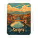 En nostalgisk och evakuerande skildring av Sarajevo, huvudstaden i Bosnien och Hercegovina, som belyser landets rik och olika kulturella influenser. Utformningen har stadens ikoniska landmärken, bustiga gator och en blandning av ottomansk och österrikisk-ungersk arkitektur, som alla återges i en vintage stil. Den här teckningen fångar det väsentliga i Sarajevos unika karaktär och historiska djup.
