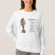 Vit grundläggande T-shirt med lång sleeve med en bild av en brassstaty av Hindu Goddess Saraswati och en beskrivning av henne. Saraswati är en gudinna för kunskap och konst och representerar det fria flödet av visdom och medvetande. Se hela samlingen av guddess apparatur i SPECIELLA TUUCHES | Avsnittet Party favors.