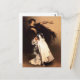 Sargent Spansk dansare-vykort. Oljemålning på arbetsyta från 1879-82. Den amerikanske målaren John Singer Sargent reste runt i världen och målade upp mästerligt porträtt och landskap. Spanska dansaren är en av hans mest visuellt dynamiska målningar, som skildrar en ung spansk kvinna i en svart blus och vit kjol som dansar före en tom brusbakgrund. En vacker gåva till fläkt av John Singer Sargent, dansmålningar, spanska dansare och amerikansk konst.