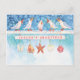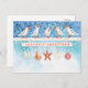 På en vinterdag sjunger en grupp fiskmås perch en rustik bredvid Season Greetings-skylt. Angående: Barbara Bayer ursprungliga vattenfärg