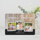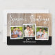 En modern lantlig design av älskvärd typografi som läser "säsong hälsningar" och presenterar en inramad collage av tre foto av din lyckliga familjuppsättning på en wood kornbakgrund för faux på bekläda. På baksidaen är ett i naturlig storlek foto passande för att inrama. Ett härligt samtidat kort för några Julhälsningar.