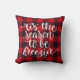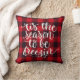 Roligt reversibel jul dekorativ kudde i en röd och svart buffel med typografi "Tis the song to be fryezin" på ena sidan och snöflake på den andra.
