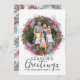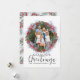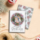 Det här är en elegant julkrans med säsong blad, en originalvattenfärgsgrafik som skapades i vår studio. Med anpassadets foto och familj namn och ett samordnande mönster på motsatt sida.