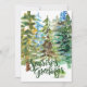 Säsongens hälsningar i julgranar. Konsten har också snöfallet på färgat träd. Gröntens dekorativa typografi gör målningen mer attraktiv.