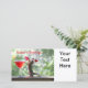 En ekorre med en tomtehatt sipprar en cocktail från ett halm med "Season's Greetings" skrivet i skript ovan. Ett originalfoto för dig, ekorre älskare därute!