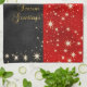Säsonghälsningar - röda och guld- jul för svart, kökshandduk