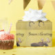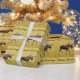 En bild av en bull mos som läggs ovanpå en hjärngarvad läderbakgrund. Texten som läser "Säsongens hälsningar" visas också.
