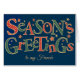 Ett julkort i snyggt för en Fiancee, med " Season's Greetings" i rött och vitt, mörk grönt och vitt polkpunktsbrev, som skisseras i guld-effekten på en djup blå bakgrund och som är spridd med guld-effekt och röda stjärnor. Du kan enkelt ändra det inre meddelandet om den här textbaserade digitala designen av Judy Adamson, och om du inte kan hitta ett kort för den person du vill skicka det till finns det en anpassningsbar-front-version som du kan anpassa.