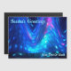 En rosa och en blå tolkning av norra Ljus som reflekteras på havets yta. Qaanaaq är en bosättning i norra Grönland. Texten som läser "Säsongens hälsningar" visas i blått och vitt. Lägg till ytterligare text.