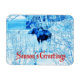 En blå och vit bild av en koma i en stadsplats under vintern. Text som läser "Säsongens hälsningar" visas i rött. Möss bor året runt i många algeriska samhällen. Här i Anchorage finns det omkring 1 500 djur, tillsammans med vargar, brunbjörn och andra vilda djur. De beter sig vanligtvis väl. De gator i kor vid korsningen efter att ha väntat på en promenadsignal.