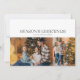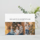 Det här säsongens hälsningar Jul dubbelsidigt platt kort med modern typografi, 4 foton collage på baksidan. Infoga dina favoritfoton, lägg till en personlig touch med ditt eget hjärtliga meddelande och anpassa det efter eget tycke. Foton av prostooleh / Freepik.