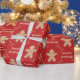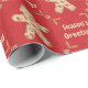 Här har vi en papper som innehåller en urklippning av en kaka med gingerbröd med många kakor inuti, och ord Säsonhälsningar inuti ett ram som är tillverkat av rullande stift med lätt polka dots på djup röd färgad. Detta papper finns i många-storlekar och är en matchning mot andra inslagna , vävnadspapper, presentpåsar och ett gratulationskort. Det här är en perfekt till dina gåvor den här julhelgen.