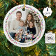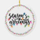 Säsonhälsningar Fotojul Ljus Ornament. Skapa en minnesstund för jultomten med den här fotodekorationen som har ett bild, en festlig SEASON's GREETINGS i moderna kalligrafskript typografi accentuerad med färgstark våtfärg ljus och personlig med namn och år eller din anpassningsbar på framsidan med SEASON:s GREETINGS-design på baksidan. BISTÅND: Om du vill ha hjälp med designändringar kontaktar du designern INNAN ORDERING via fliken Zazzle Chatta MESSAGE nedan eller e-post makeitaboutyoustore@gmail.com.